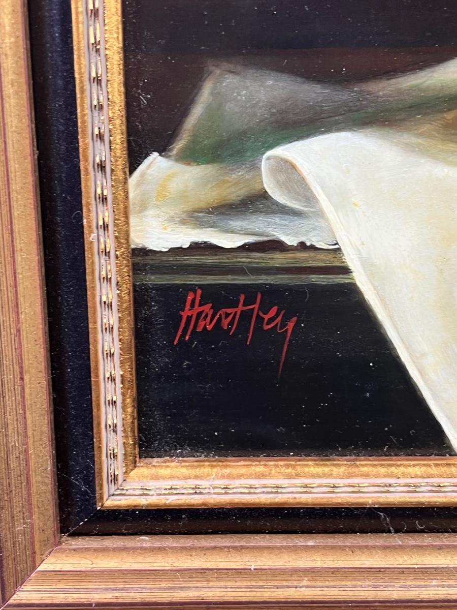 A graduate of The Maryland Institute College of Art with a degree in Fine Art, Hartley was involved with the creation of award winning graphic design while in the corporate world, and then went on to paint for private collectors. Her artwork is largely influenced by 17th and 18th century artists, and her interest in Dutch and Flemish art led her to study the techniques and formulas of the Old Masters. She often uses hand ground pigments, lead primed surfaces, black oil and glazes, lending to the richness and luminosity of her work.