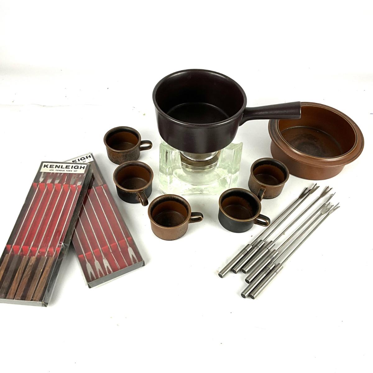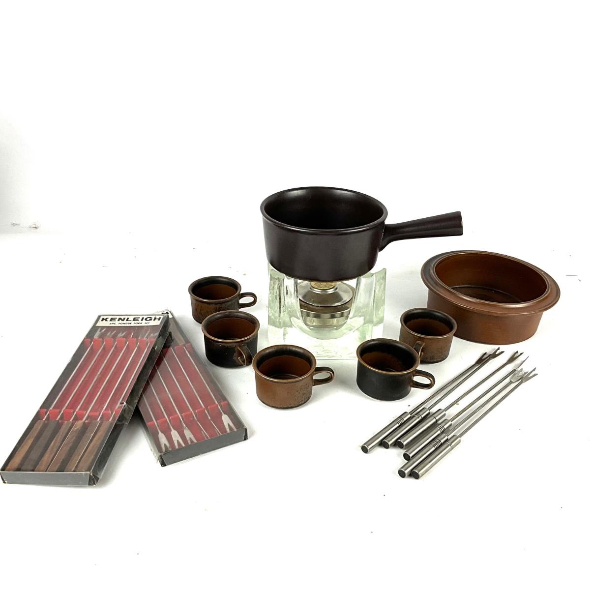 299 Vintage Mid Century Modern Glass Swedish Fondue Set