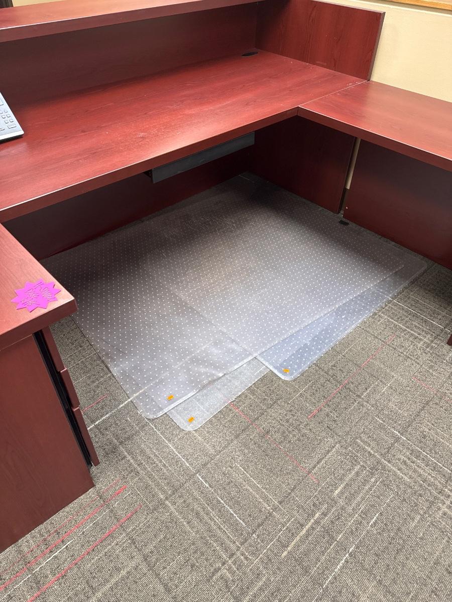 2CLOCK9-large desk, phone, and chair mats plus garbage can