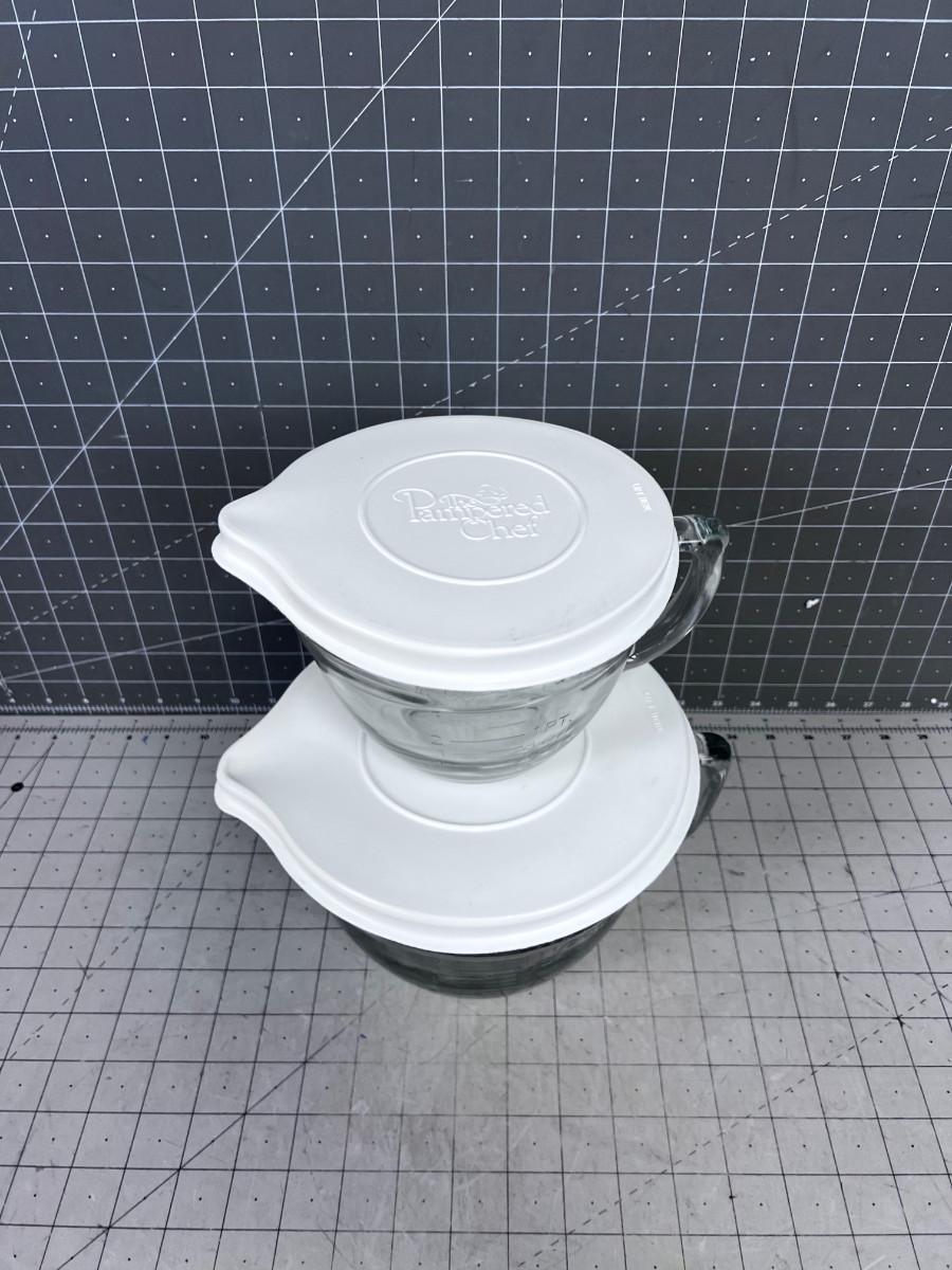 (2)LARGE Pampered Chef Measuring Cups 1 & 2 Quart with LIDS