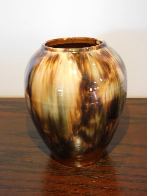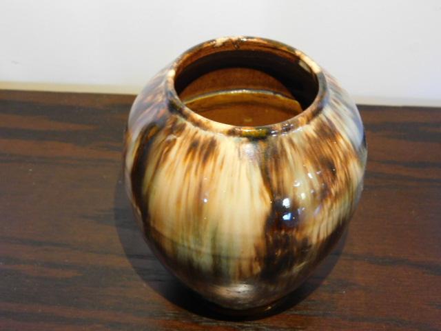 2nd Choice of 2: Brush McCoy Drip Glaze Vase 6" predominately onyx with heavy creams