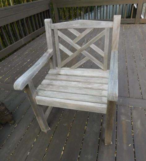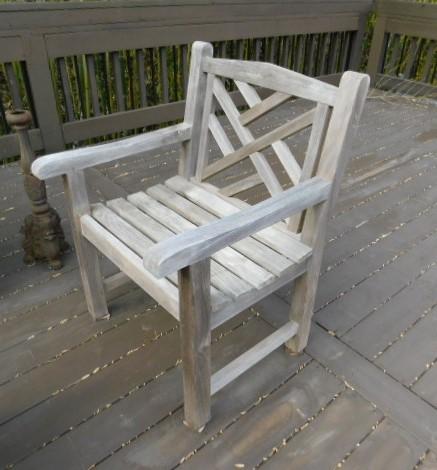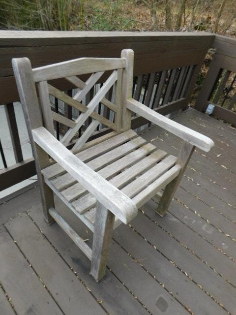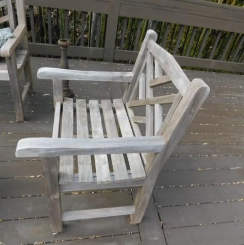 2nd Choice of 2: Natural Teak Wood Patio Chair 26" has some minor weathering but solid and nice look