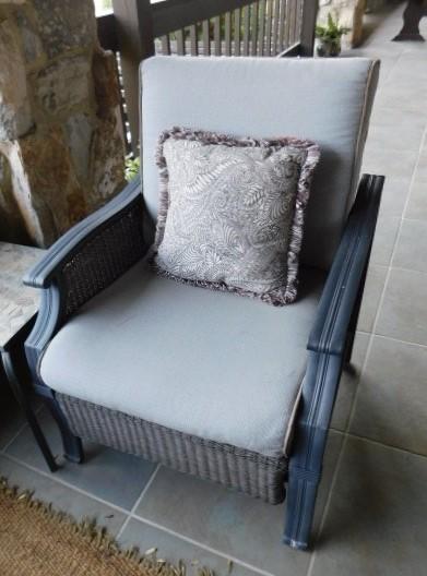 2nd Choice of Two: Hampton Bay Patio Chair and Ottoman Composite/Rush Frame & Cushions in very good condition
