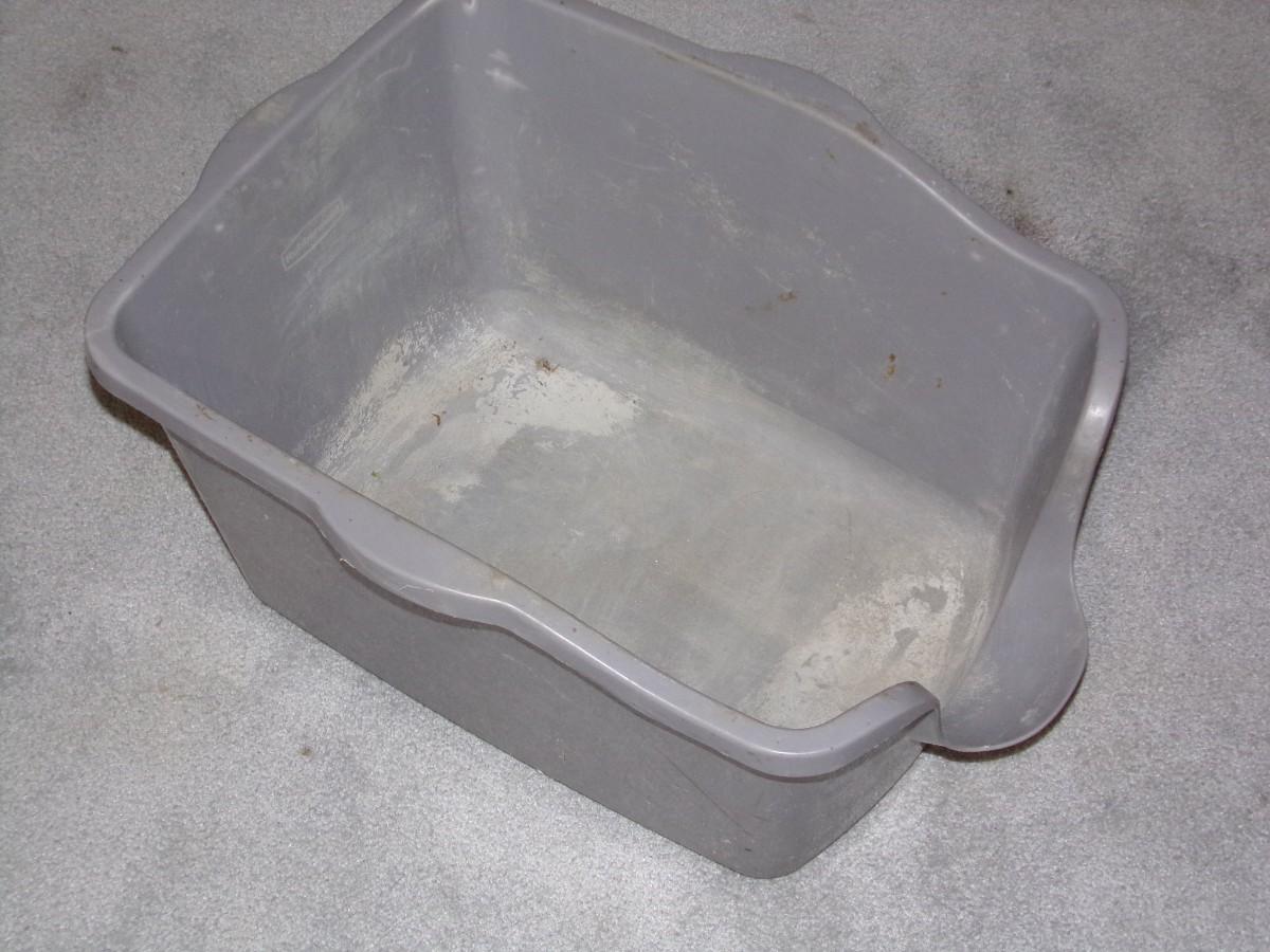(2of2) High side litter box, about 17"x22"x11", gray. With scoop.