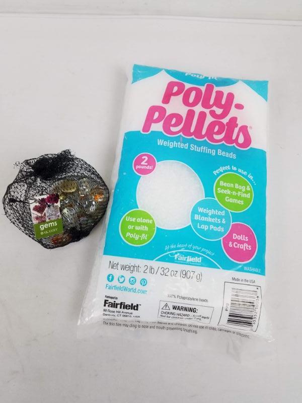 2 pc Crafting Items: Weighted Stuffing Beads, 2 pounds. Small Bag of "Gems" - New