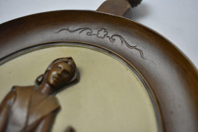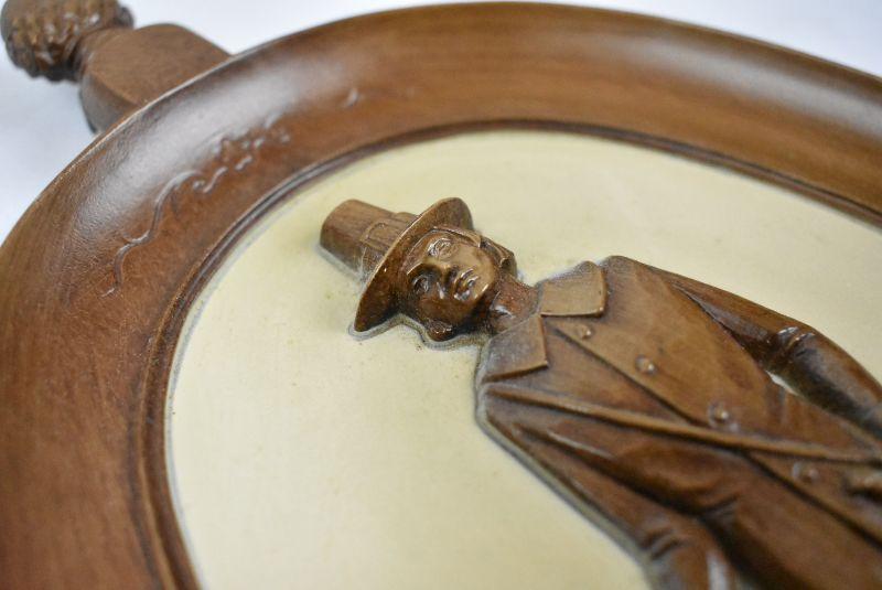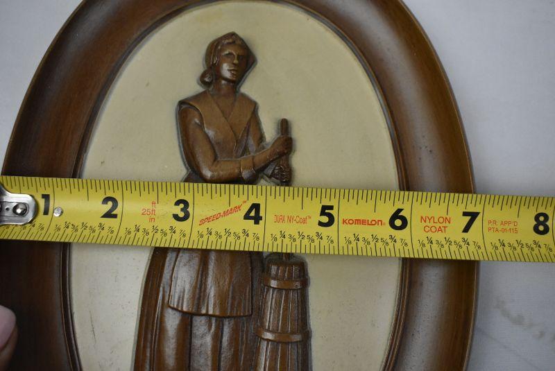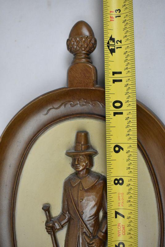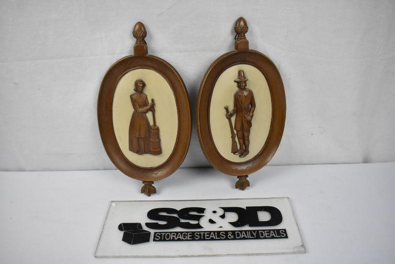 2pc Plastic Wall Decor Pilgrim Man & Woman, Cream & Brown Ovals Syroco - Vintage