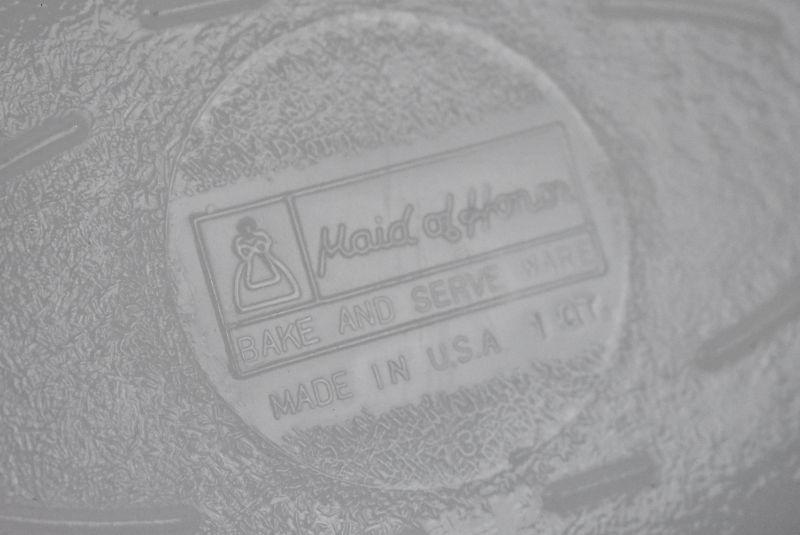 2Pc Vintage Glass Bakeware: Glasbake 1.5Qt & Maid of Honor White w/ Blue Flowers