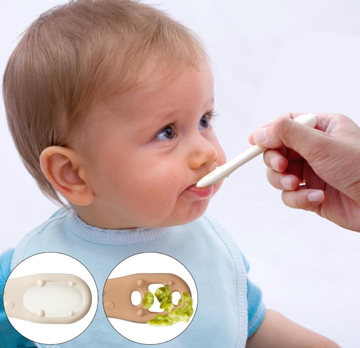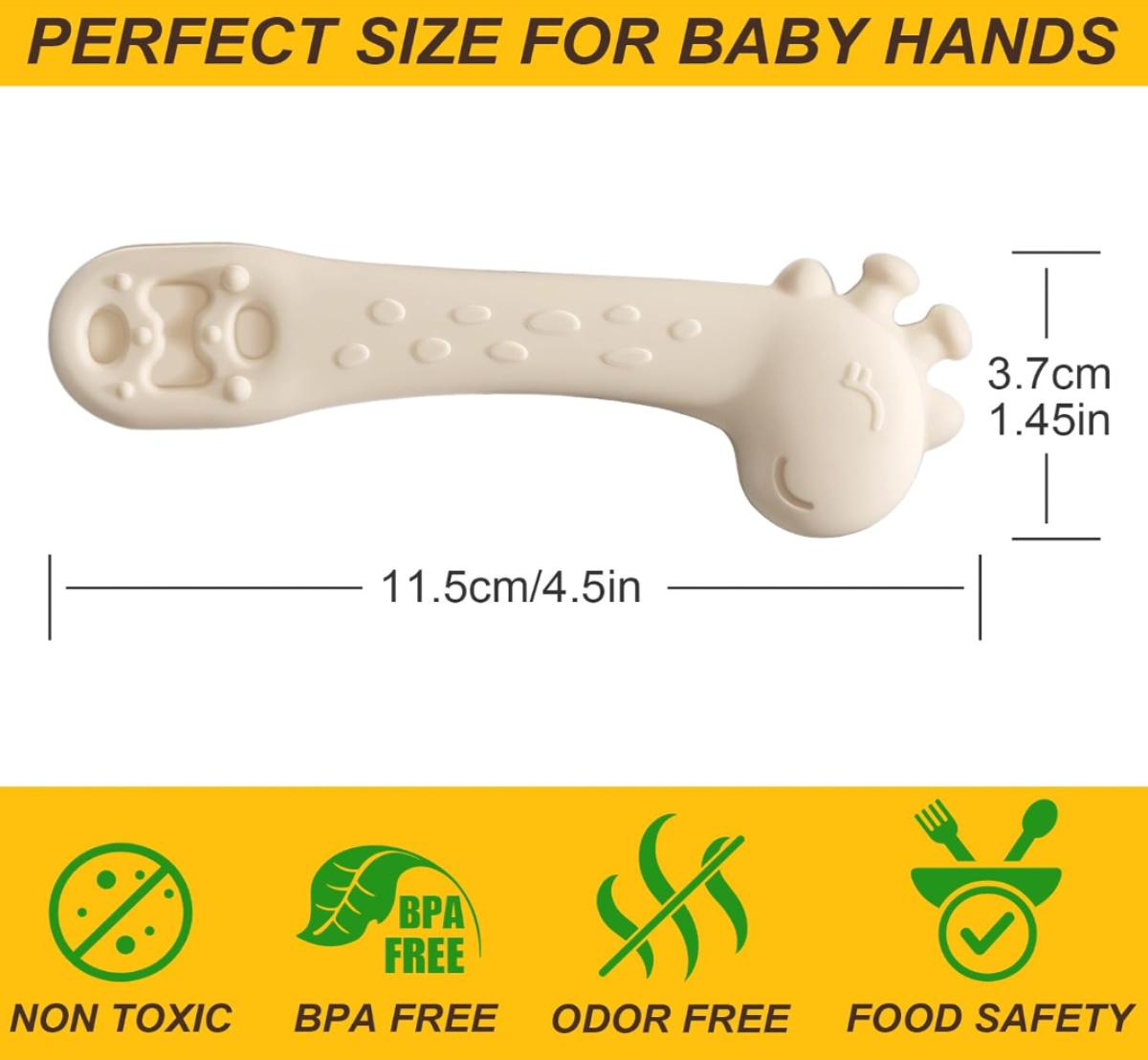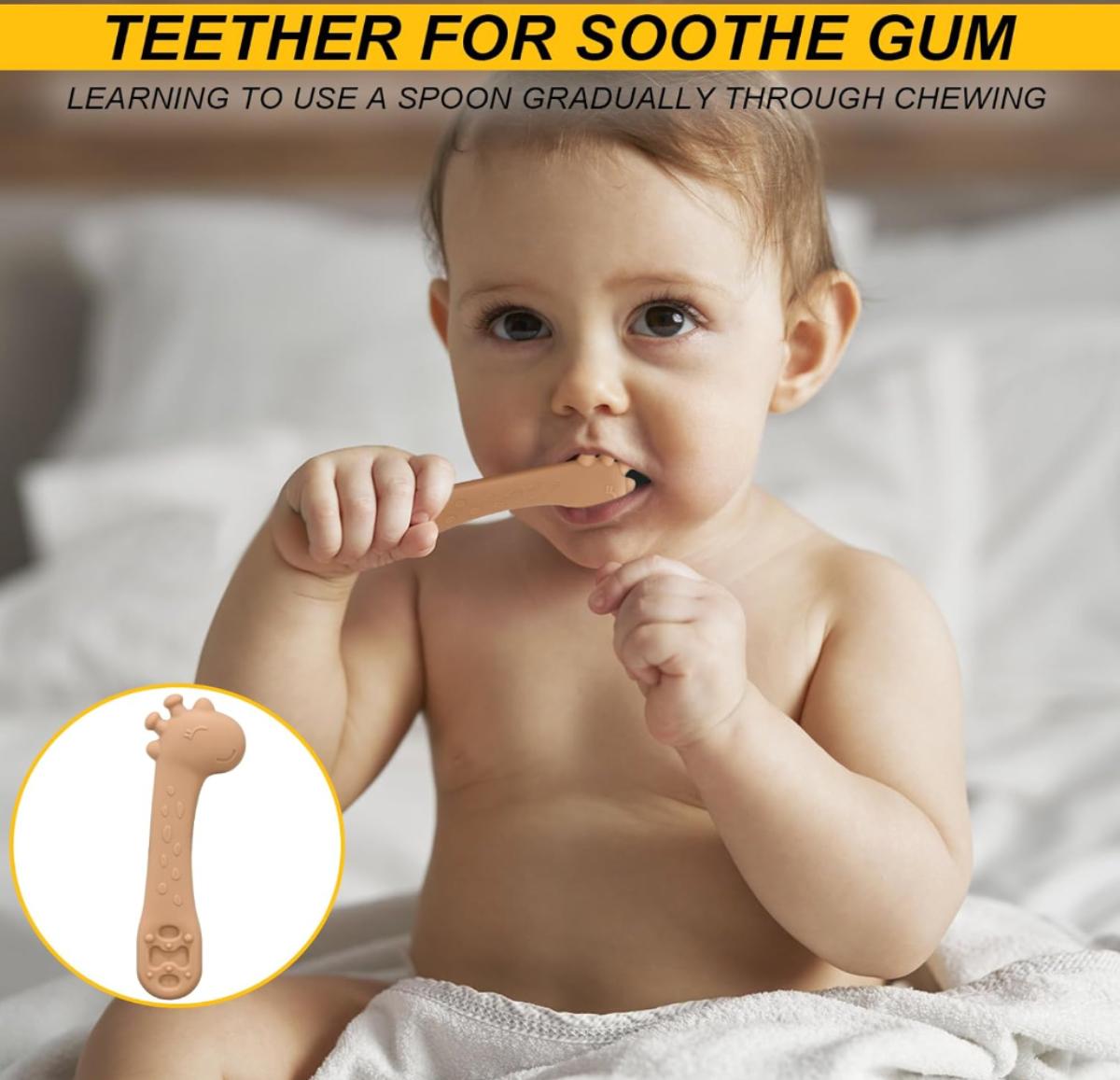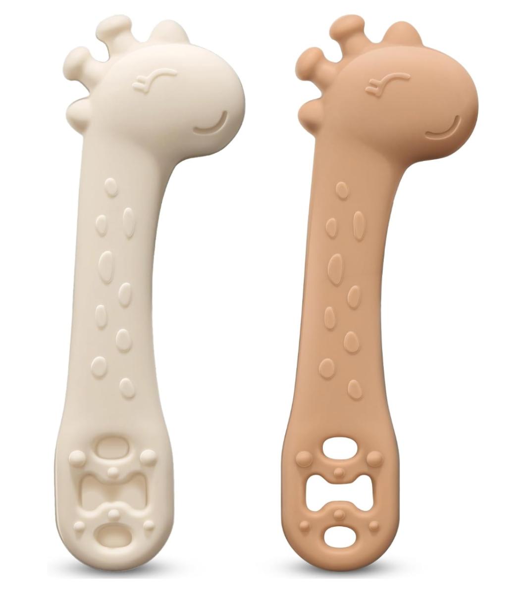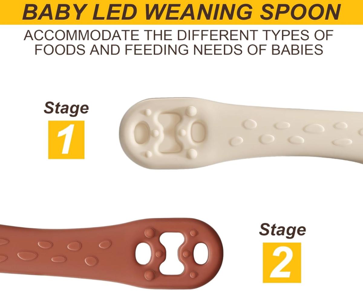 2-Piece Baby Spoons, Baby Led Weaning Spoons for Stage 1 + Stage 2, Toddler Spoons with Soft-Tip Soothing Gums, Self Feeding 6 Months (Beige & Brown)