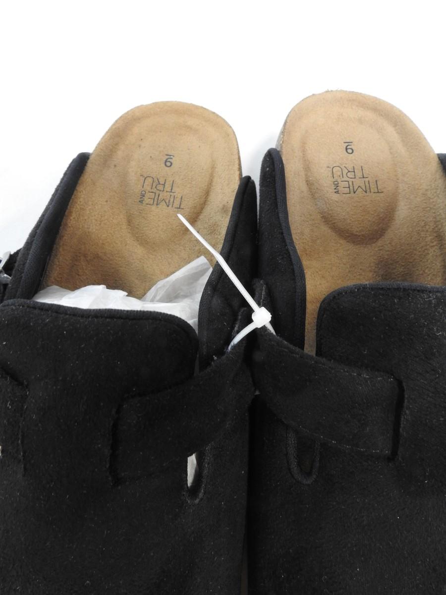 2pr Womens Shoes, Size 9: Victoria K Black Flats, Time & True Buckled Clog, Out Of Box, Some Warehouse Dirt-New