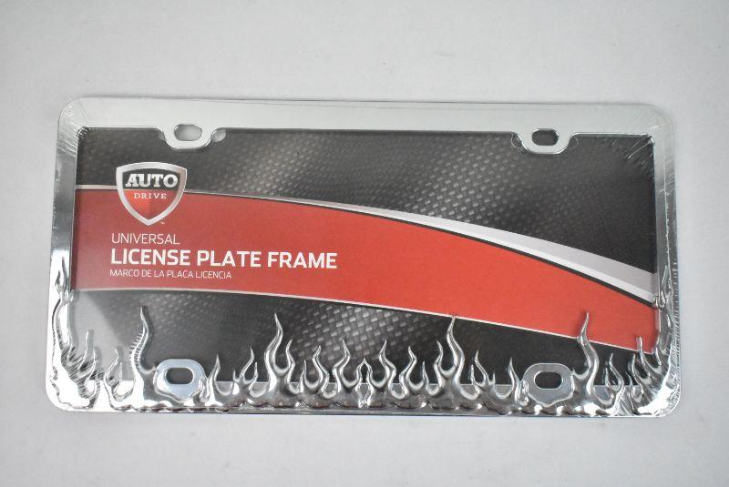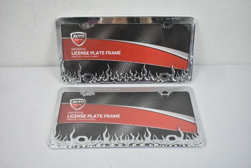 2x Auto Drive Universal License Plate Frames with Flames Design - New
