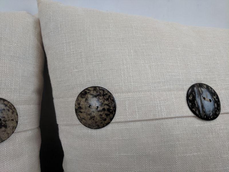 2x Better Homes & Gardens Decorative Pillows, Cream w/ Coconut Buttons - New