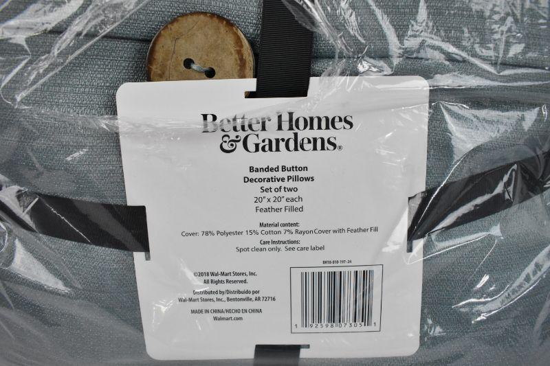 Better Homes and Gardens Banded Button Decorative Pillows, Feather Filled 20" x 20", Quantity 2 - New