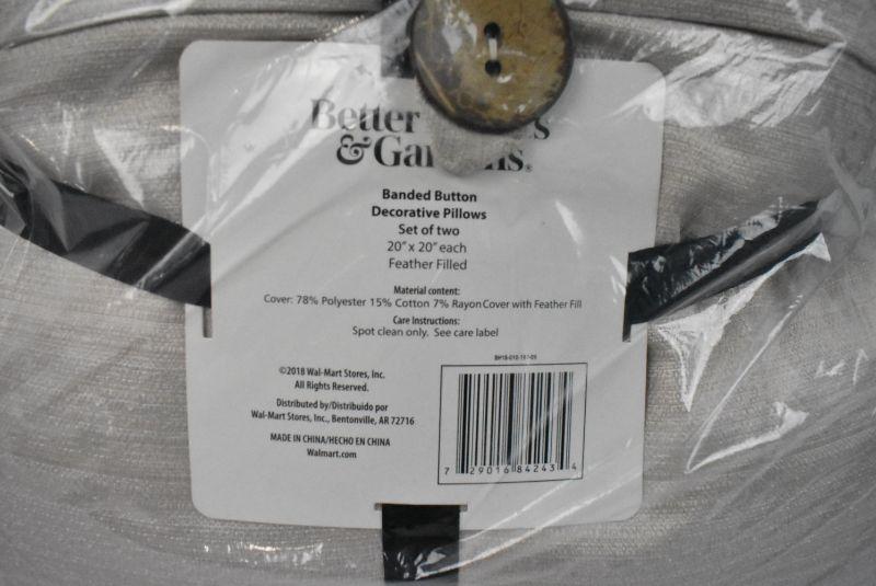 Better Homes and Gardens Banded Button Decorative Pillows, Feather Filled, Set of Two, 20" x 20" Each, Tan/Cream - New