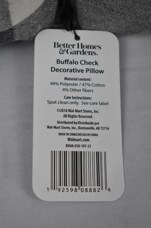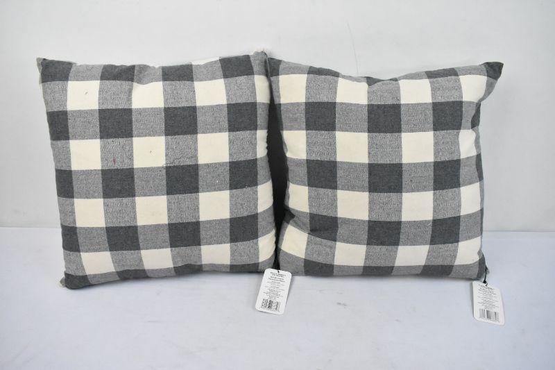 Better Homes and Gardens Buffalo Check Decorative Throw Pillows, Gray & Cream 18" x 18", Quantity 2 (2 Red Marks on 1 Side of 1 Pillow) - New