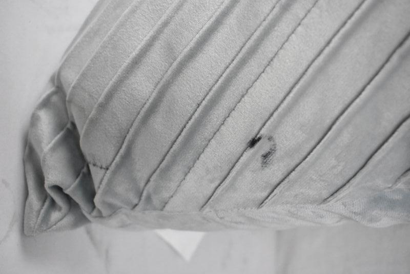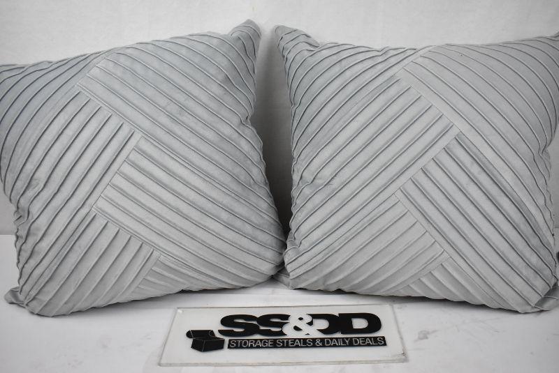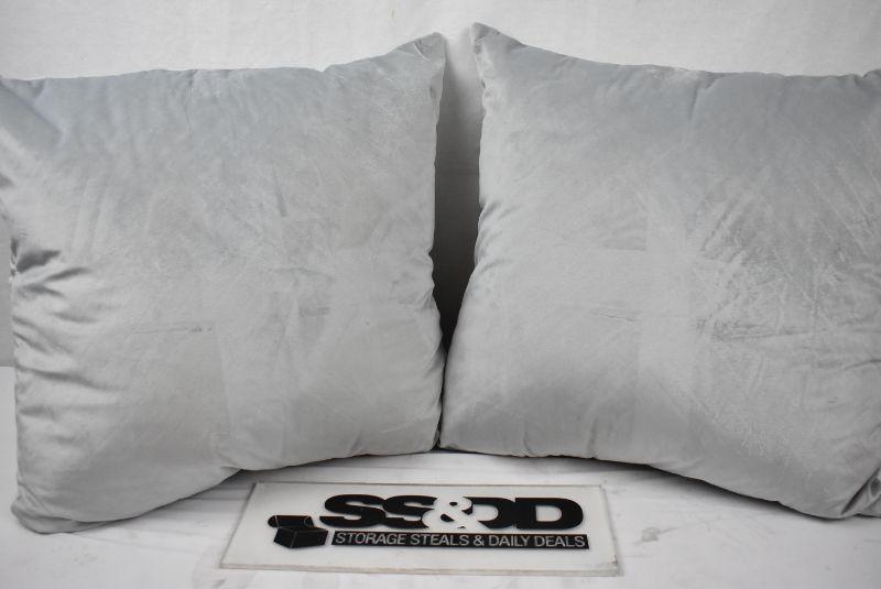 Qty 2 BH&G Textured Velvet Pillows, 20X20, Soft Silver. Warehouse Dirt on Backs, Ink mark on front edge of 1 pillow, $30 Retail