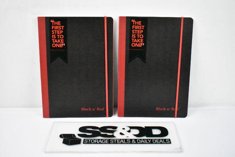 2x Black n' Red Optik Paper Notebook A4 Ruled, 144 Pages Each with Envelope & Closure - New