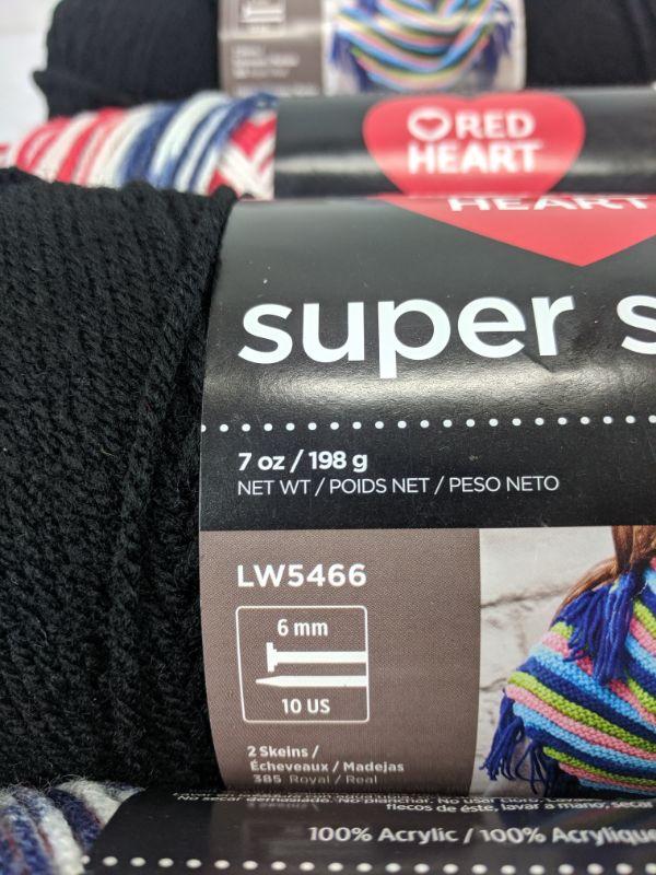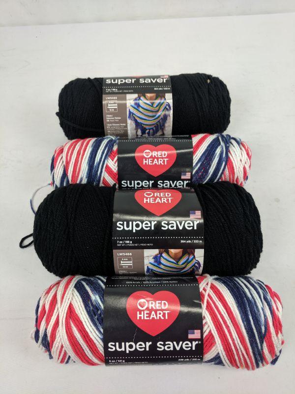 Super Saver Black Yarn, 7 oz, 364 yds, 2 Packs; Super Saver Red White and Blue Yarn, 5 oz 236 yds, 2 Pack - New