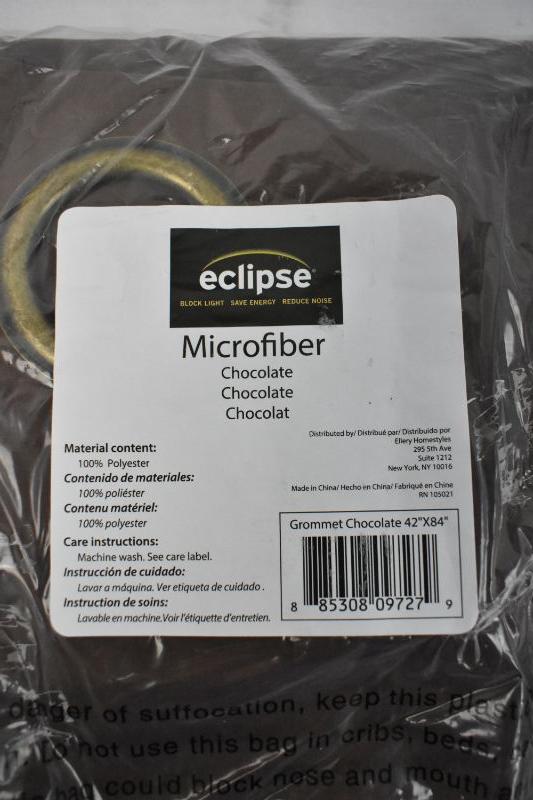 Eclipse Light Blocking Curtains, Grommet Style, Chocolate Color, 42" x 84" Each, Quantity 2 - New