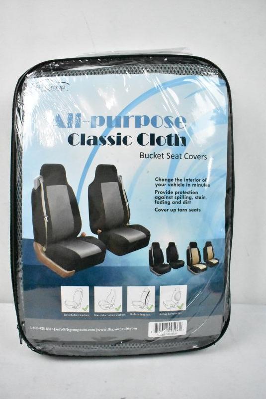 FH Group Built-In Seatbelt Compatible High Back Seat Covers, Gray/Black, 2 Pack - New