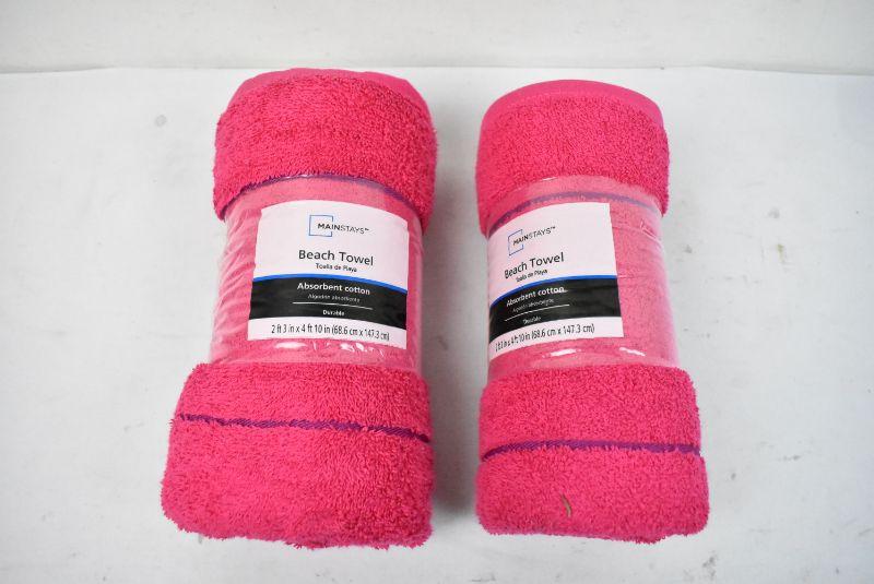 2x Mainstays Beach Towels, Fuchsia Burst Pink - New