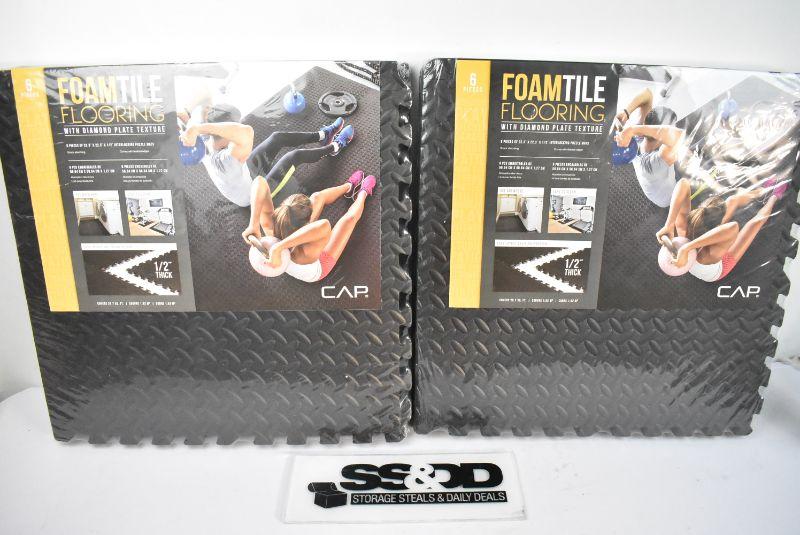 2x Packages Foam Tile Flooring Puzzle Mat, Black, CAP Barbell High Density 1/2" Thick EVA Foam, 6 Pieces, 20.78 Sq Ft (2 Packages = 12 pieces) - New