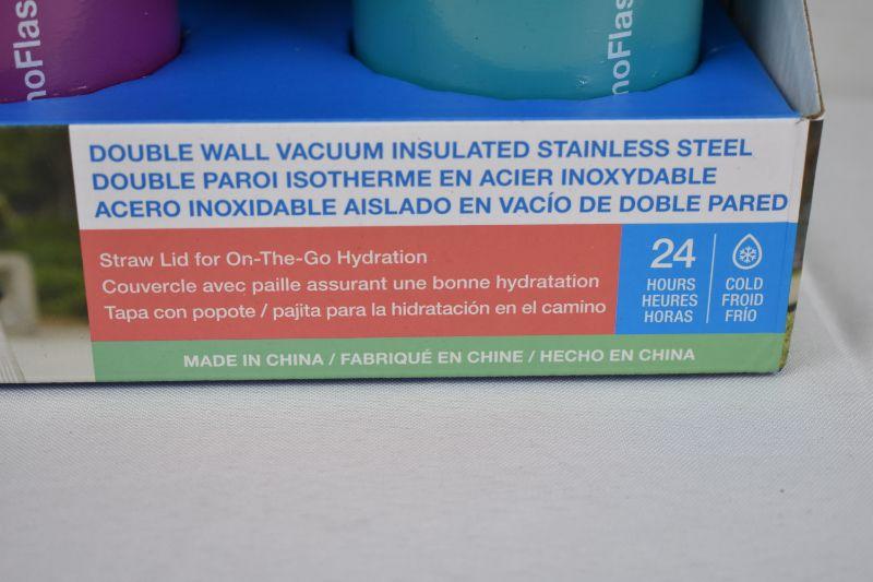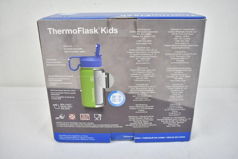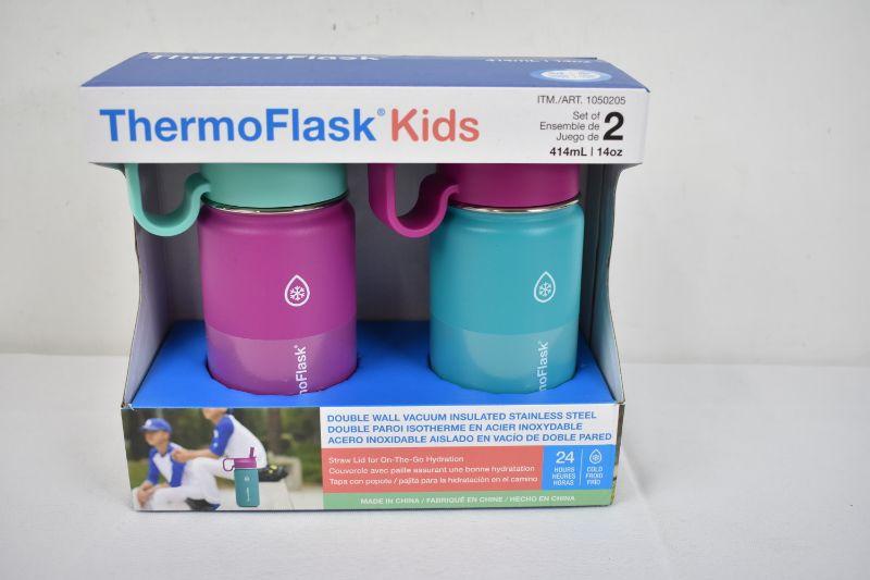 Thermos Flask Kids Set of 2: Double Wall Vacuum Insulated Stainless Steel w/ Straw Lids, 14 oz Each. Pink/Blue - New