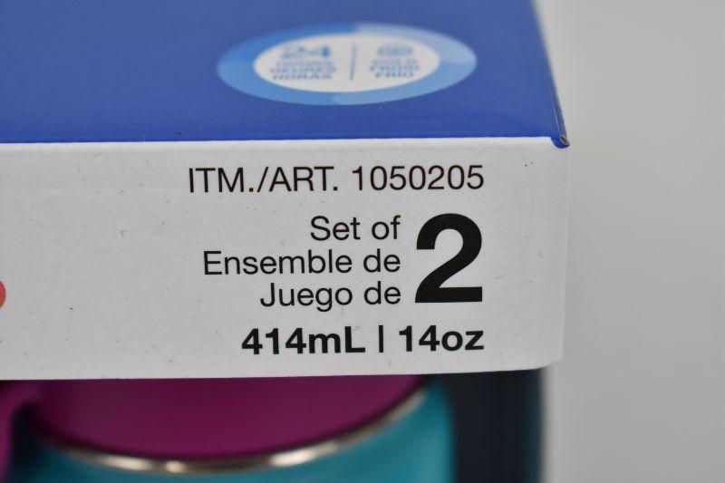 2x Thermos Flask Kids: Insulated Stainless Steel, 14 oz Each. Pink/Blue - New