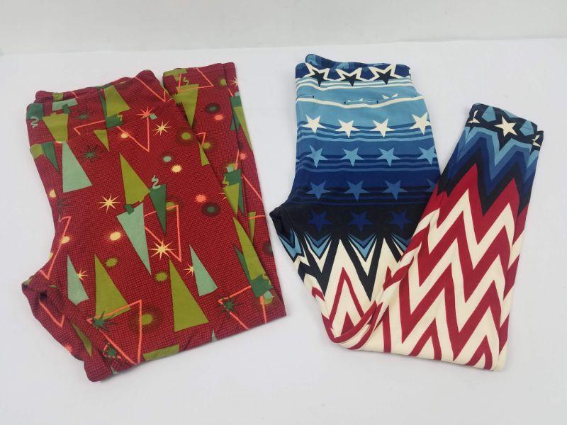 2 pairs Women's Leggings, LuLaRoe TC for sizes 10-18. Christmas & Patriotic. Each worn twice