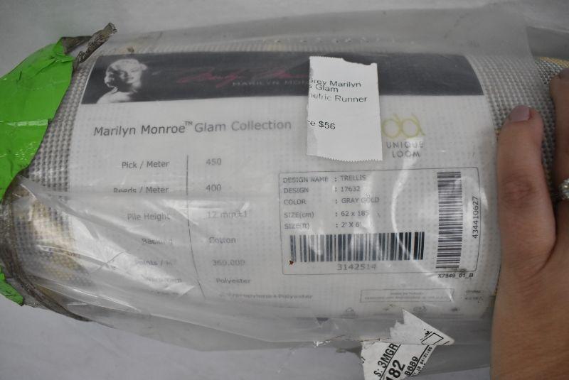 2'x6' Gold & Grey Marilyn Monroe Trellis Glam Modern Geometric Runner, $45 Retail - New