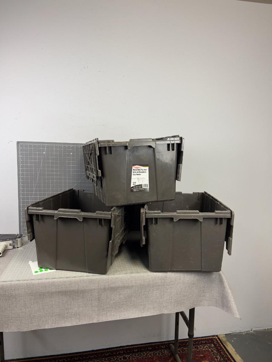 (3) 12 Gallon Heavy Duty Flip Lid Totes