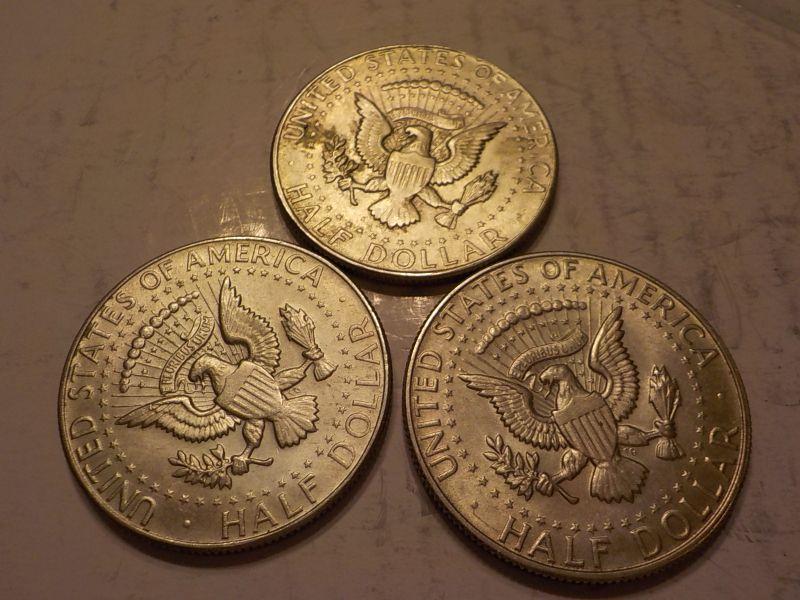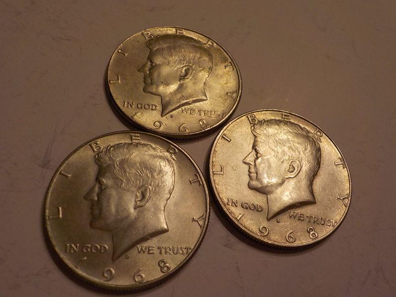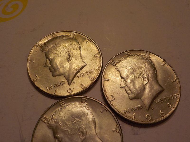 3- 1968 Kennedy Half dollars.