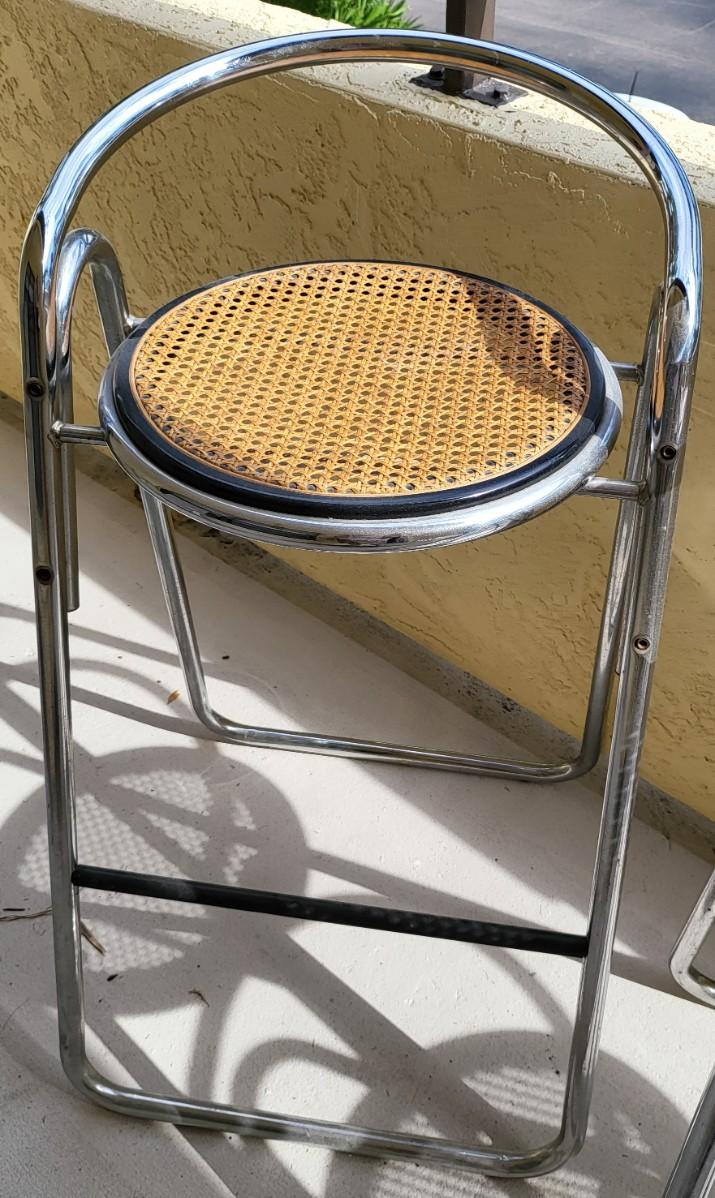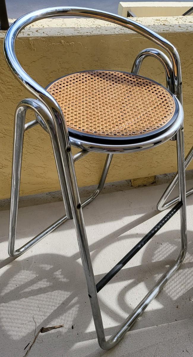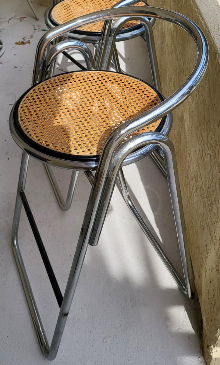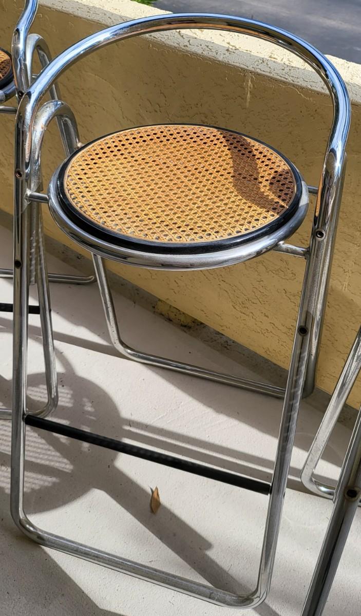 3 1970s Chrome & Cane Stools in the style of " Giotto Stoppino "