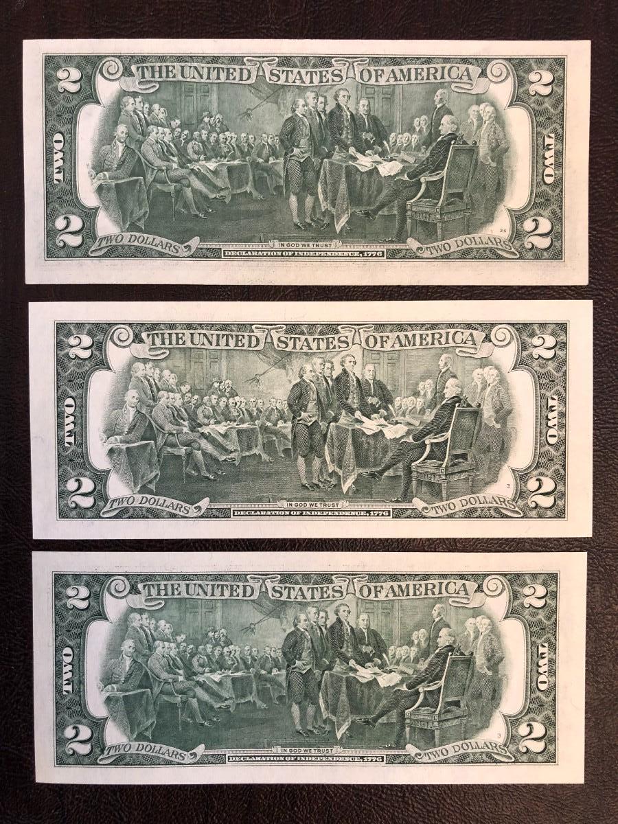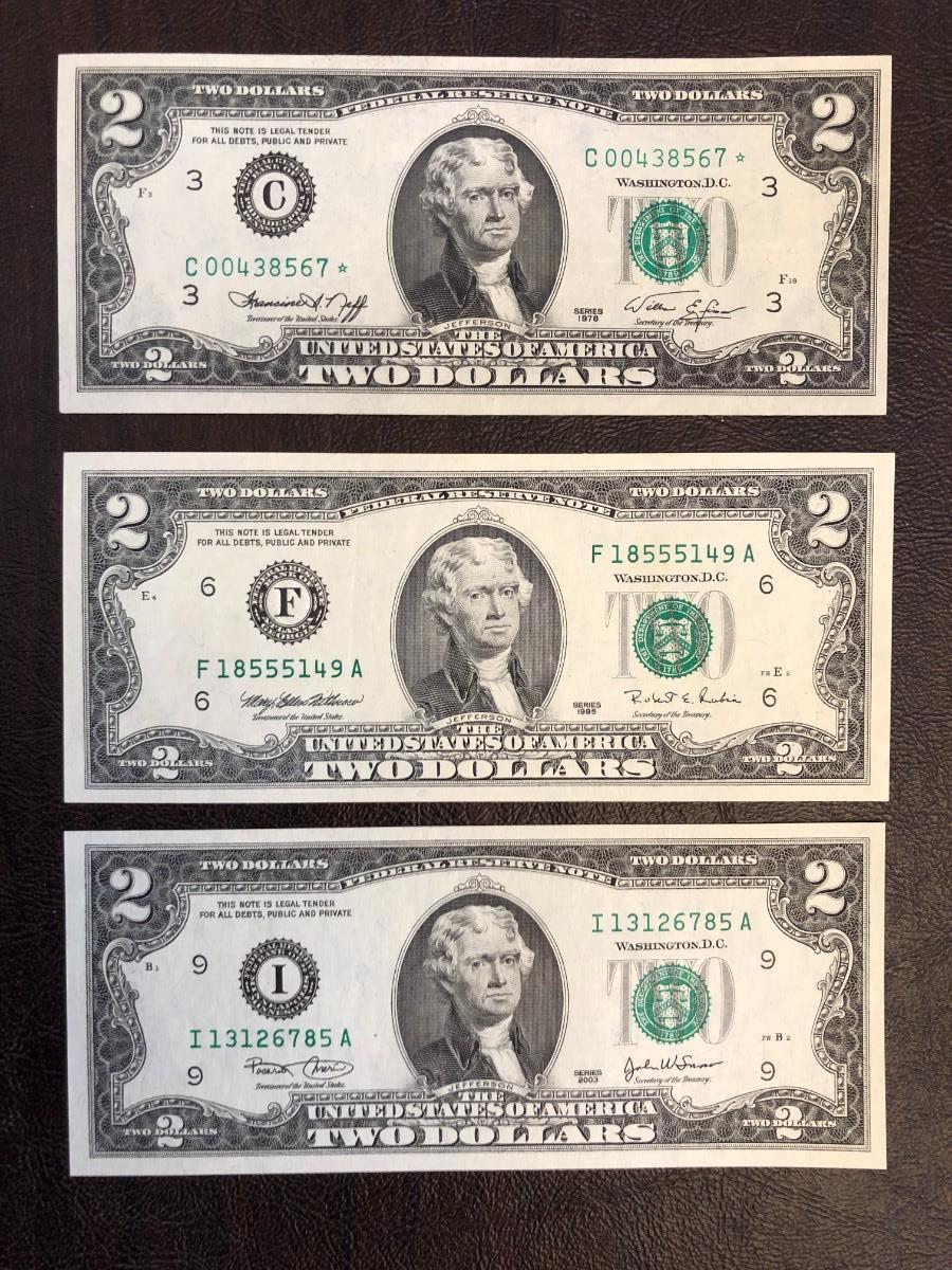 3 $2 BILLS SERIES 1976, 1995, 2003