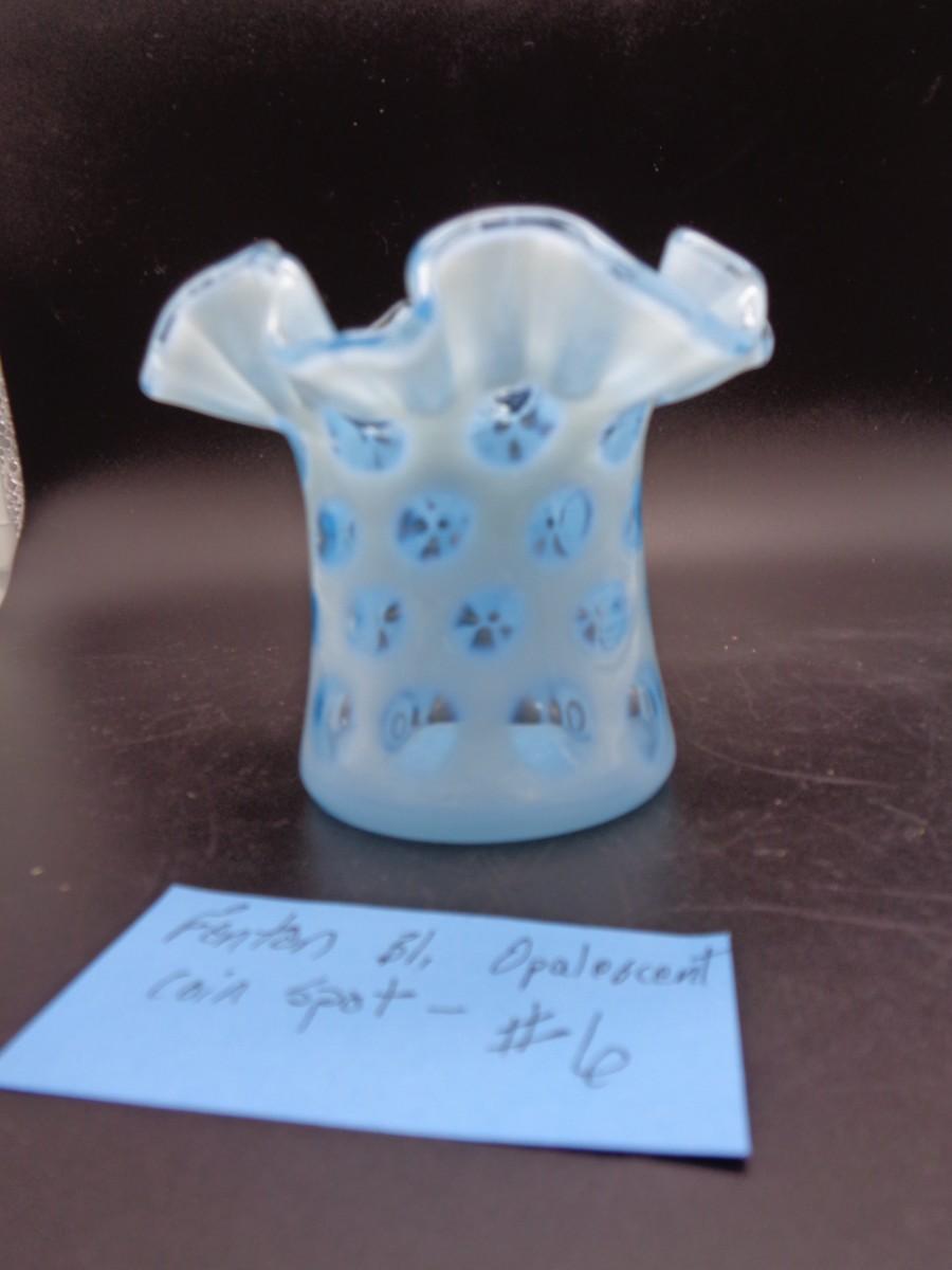 3 5/8" x 4 1/4" Fenton BU Opalescent "Coin Spot" Top Hat Vase #6