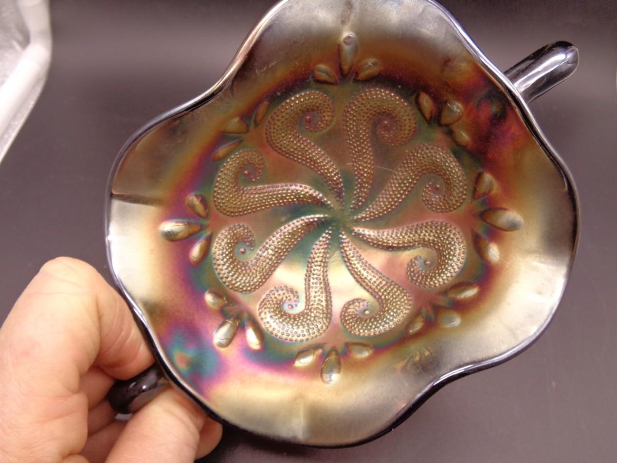 3 5/8" x 7 1/4" Antique Dugan Purple Carnival Glass "Question" Bon Bon #8