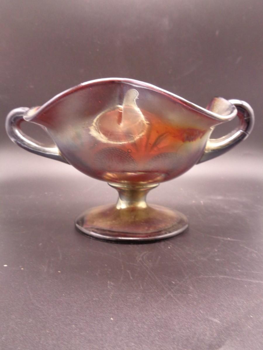 3 5/8" x 7 1/4" Antique Dugan Purple Carnival Glass "Question" Bon Bon