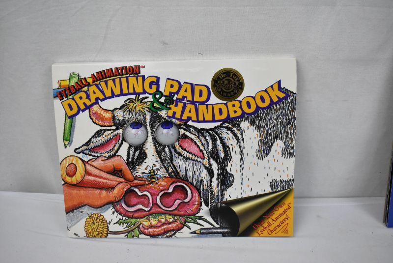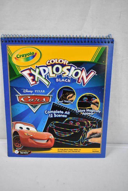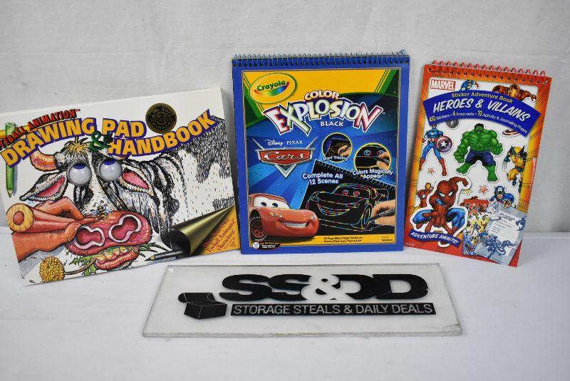 3 Activity Books: Eyeball Animation Drawing Pad, Crayola Color Explosion Disney Cars Black, and Marvel Sticker Book - New