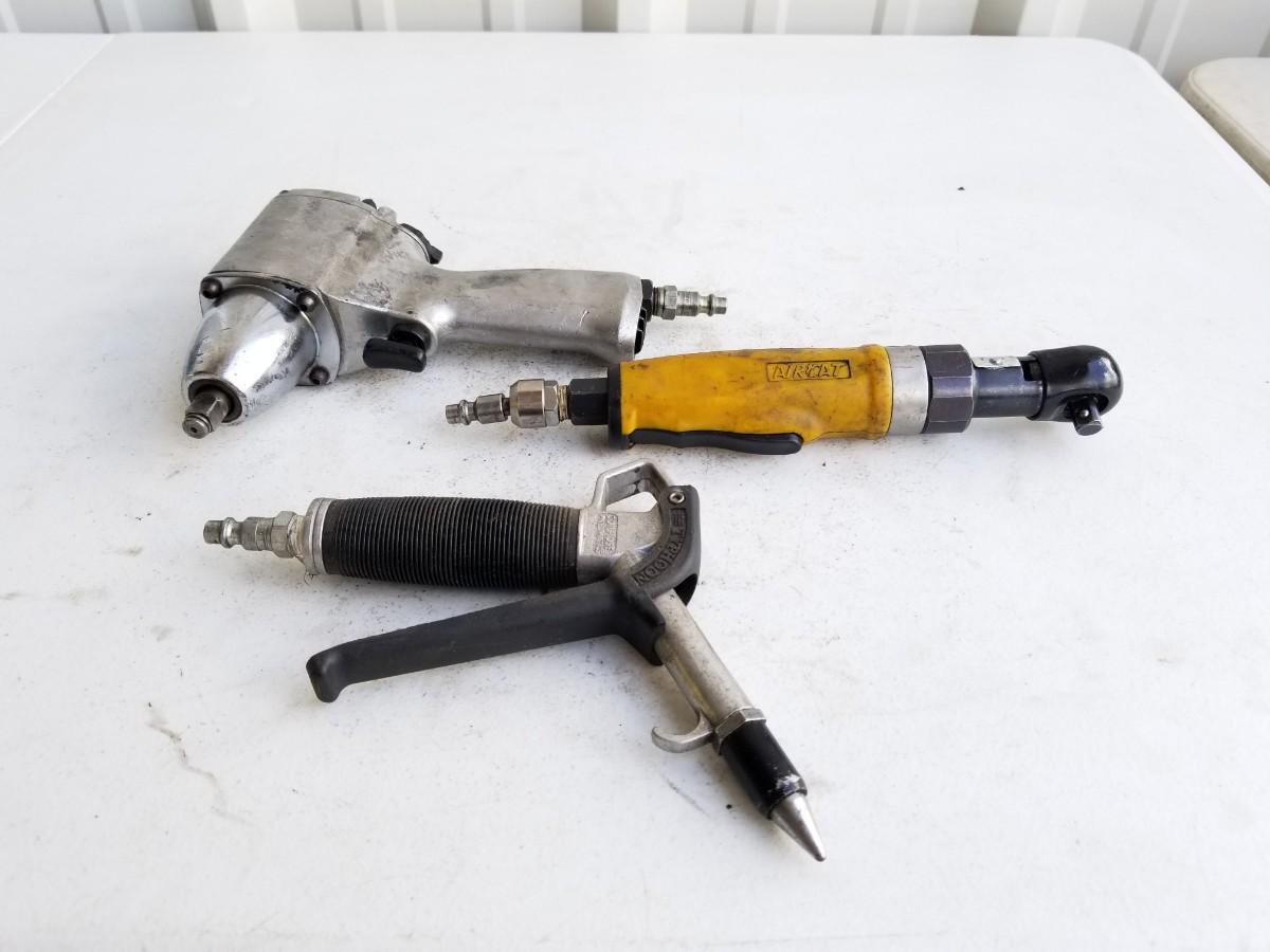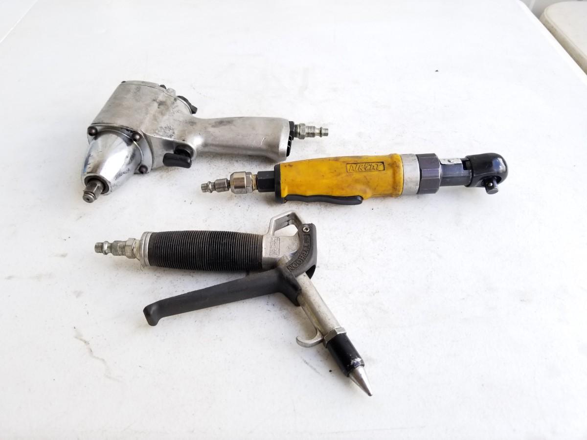 Impact wrench, air ratchet, and a blow gun attachment.