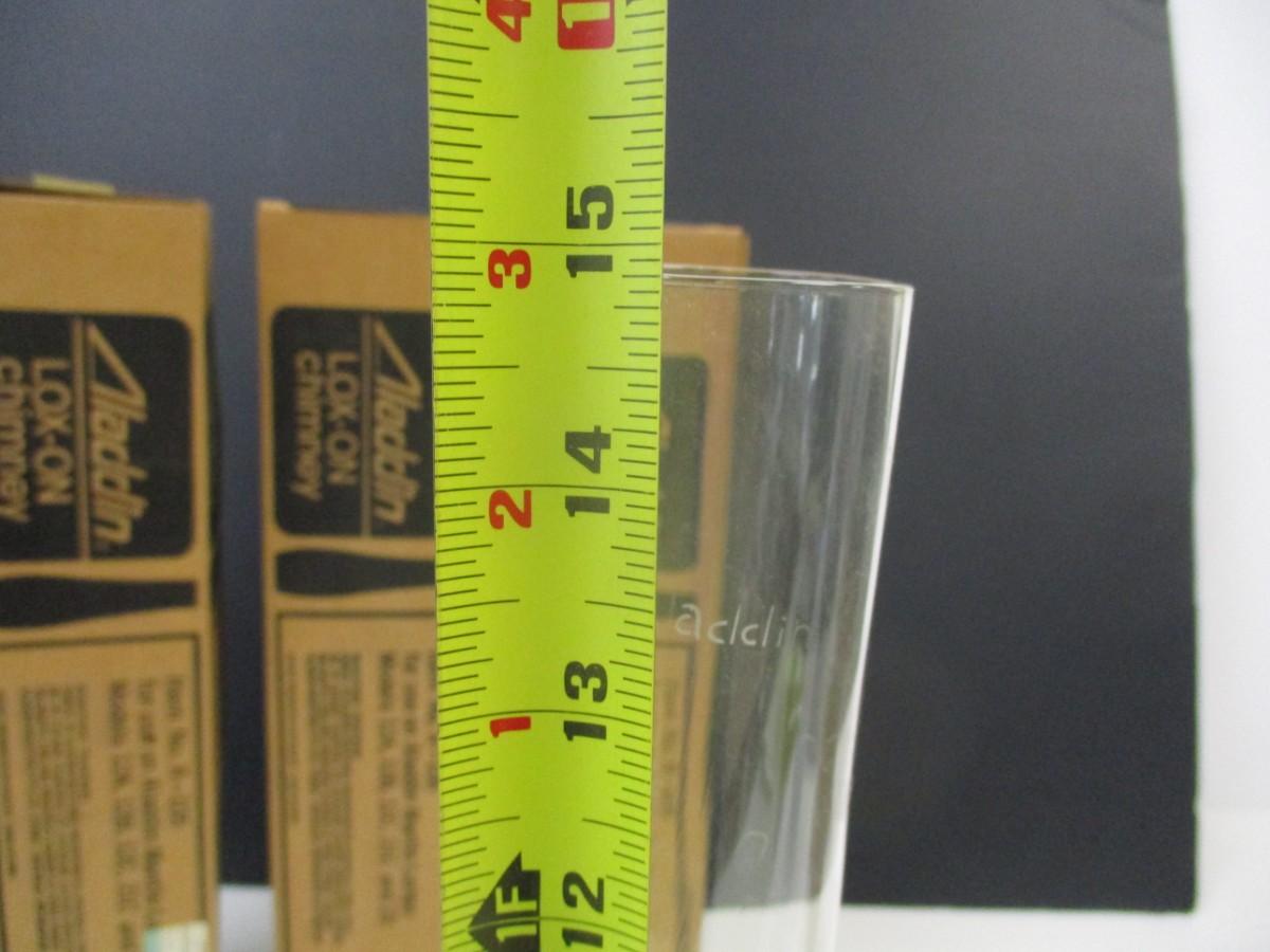 The Aladdin Lox-on Chimneys are decorative and functional lighting parts designed for use with Aladdin lamps. These chimneys are specially crafted to provide a secure and stable fit, ensuring the proper functioning of the lamp's flame and creating a unique and elegant look. Perfect for collectors or those seeking to enhance their home decor with a touch of vintage charm, Aladdin Lox-on Chimneys are a stylish addition to any lighting fixture.