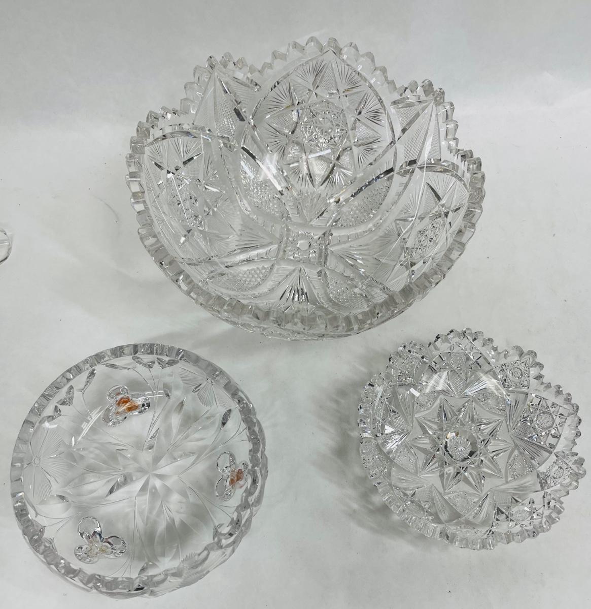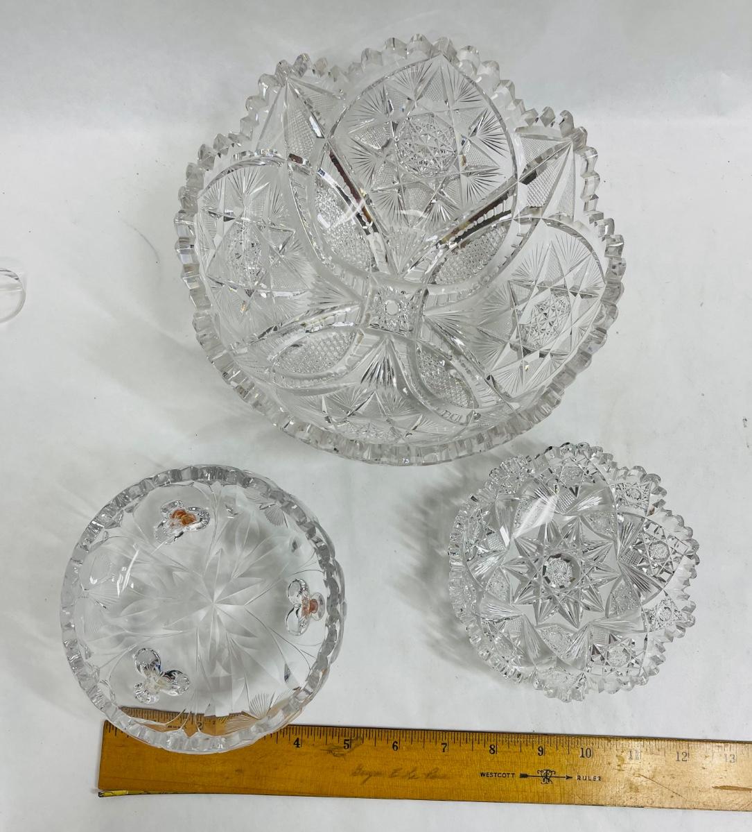 3 American Brilliant Cut Glass Serving Bowls with Sawtooth Rims