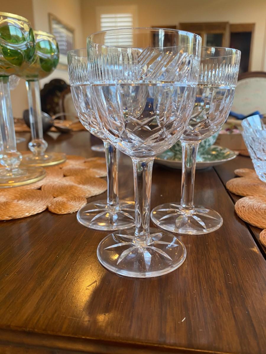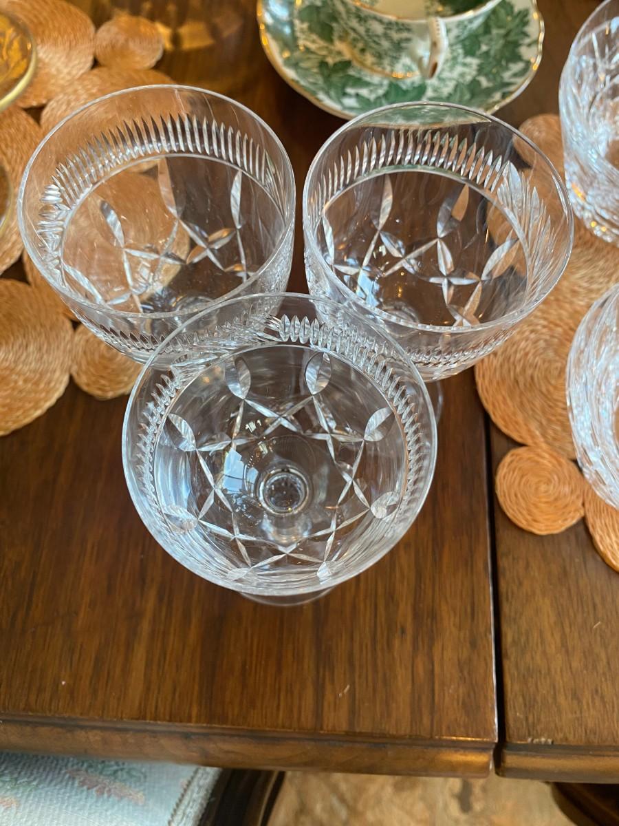 3 Antique Bohemian White Wine Crystal Glasses (circa ~ 1900).