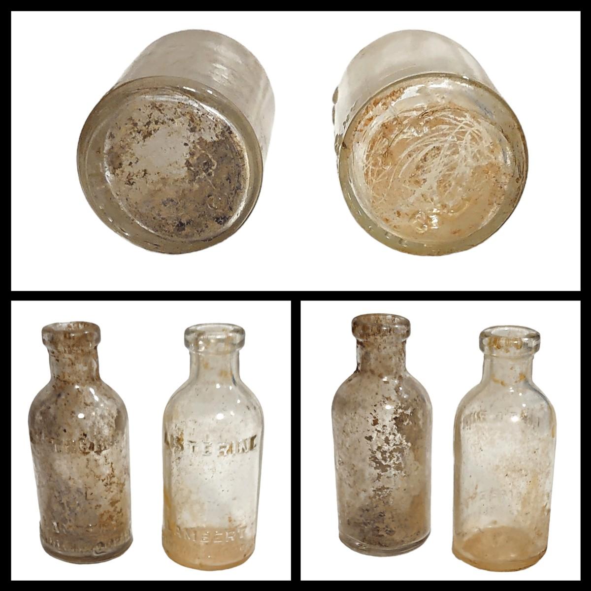 3 Antique Clear Glass Listerine Cork Top Bottles