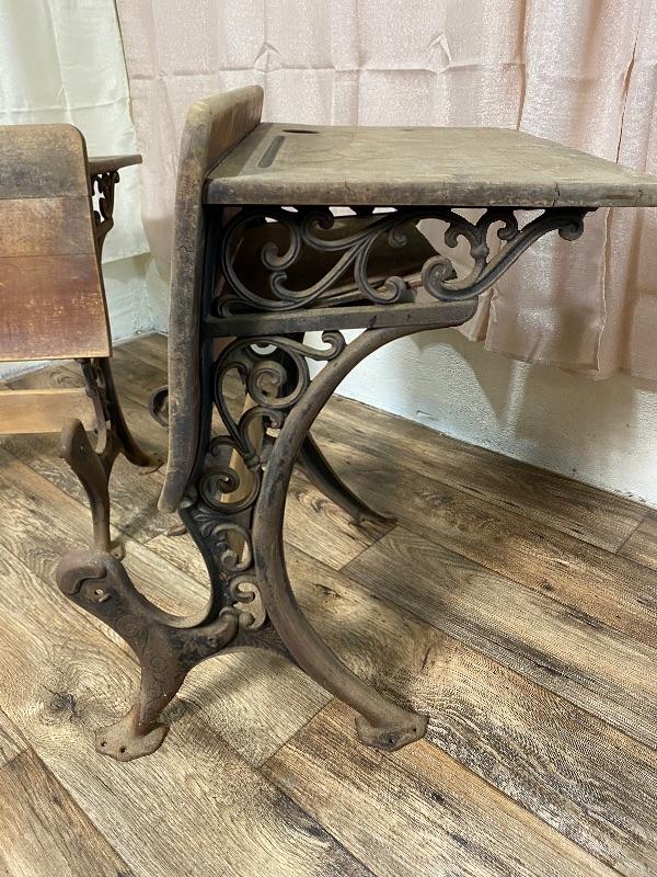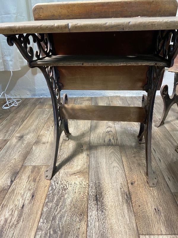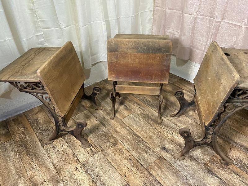 Lot #165 Three Antique Wood and Iron School Desks Ink Well Hole