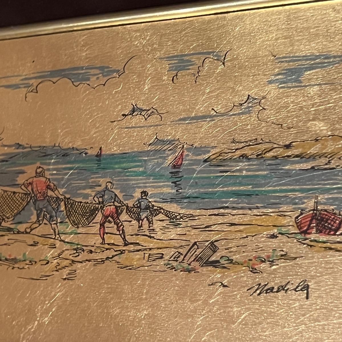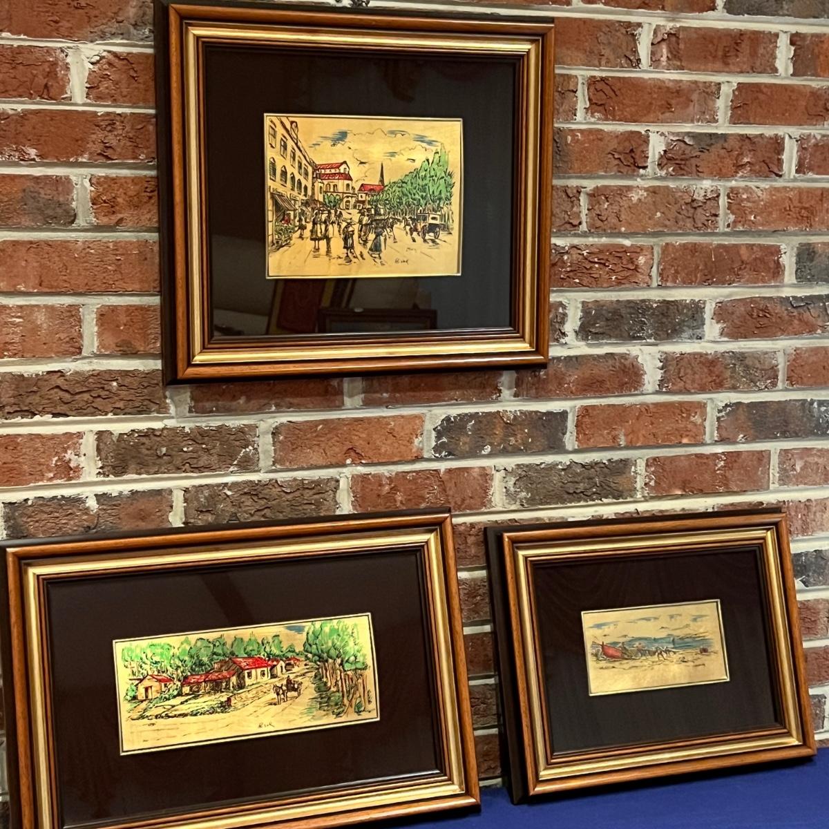 3 Vintage Italian Professionally Framed Gold Leaf Silk Screens Art