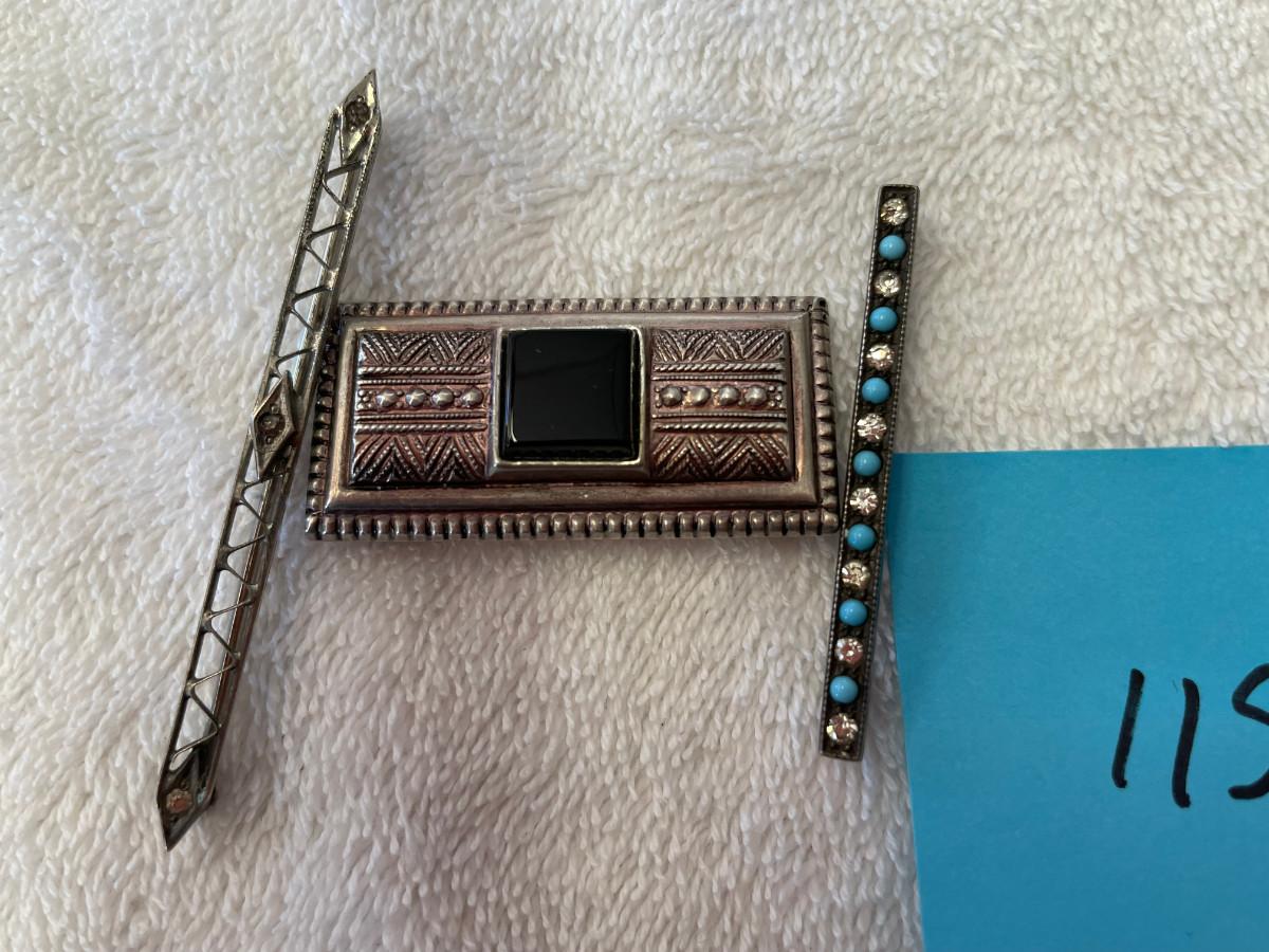 3 Art Deco Bar Pins Sterling Silver