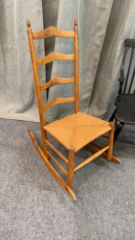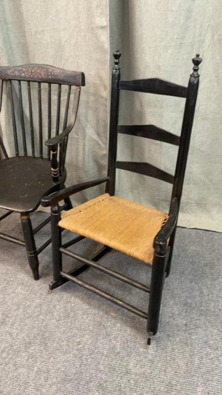 Open arm rocker, Ladder-back rocker, spindle back Hitchcock style side chair