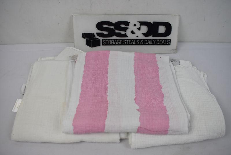 3 Baby Blankets by Aden & Anais: 2 White & 1 Pink/White Stripes