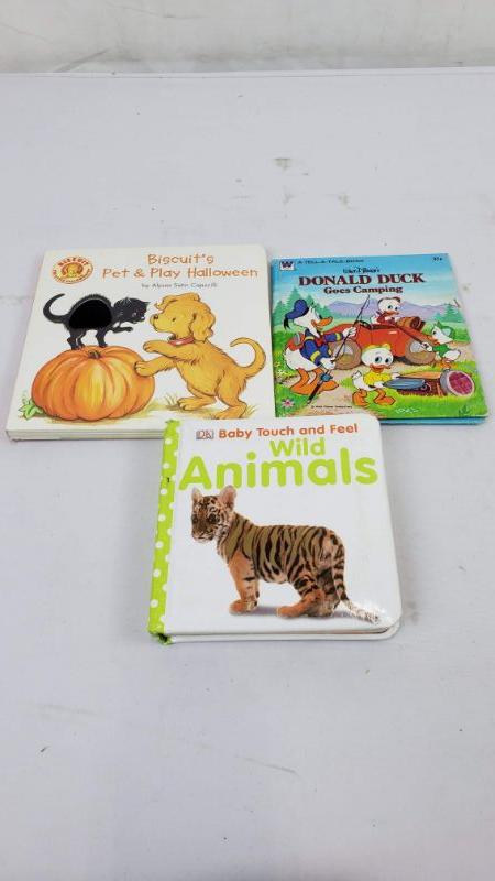 3 Baby/Toddler Books: Wild Animals, Donald Duck Goes Camping & Biscuit's Pet & Play Halloween