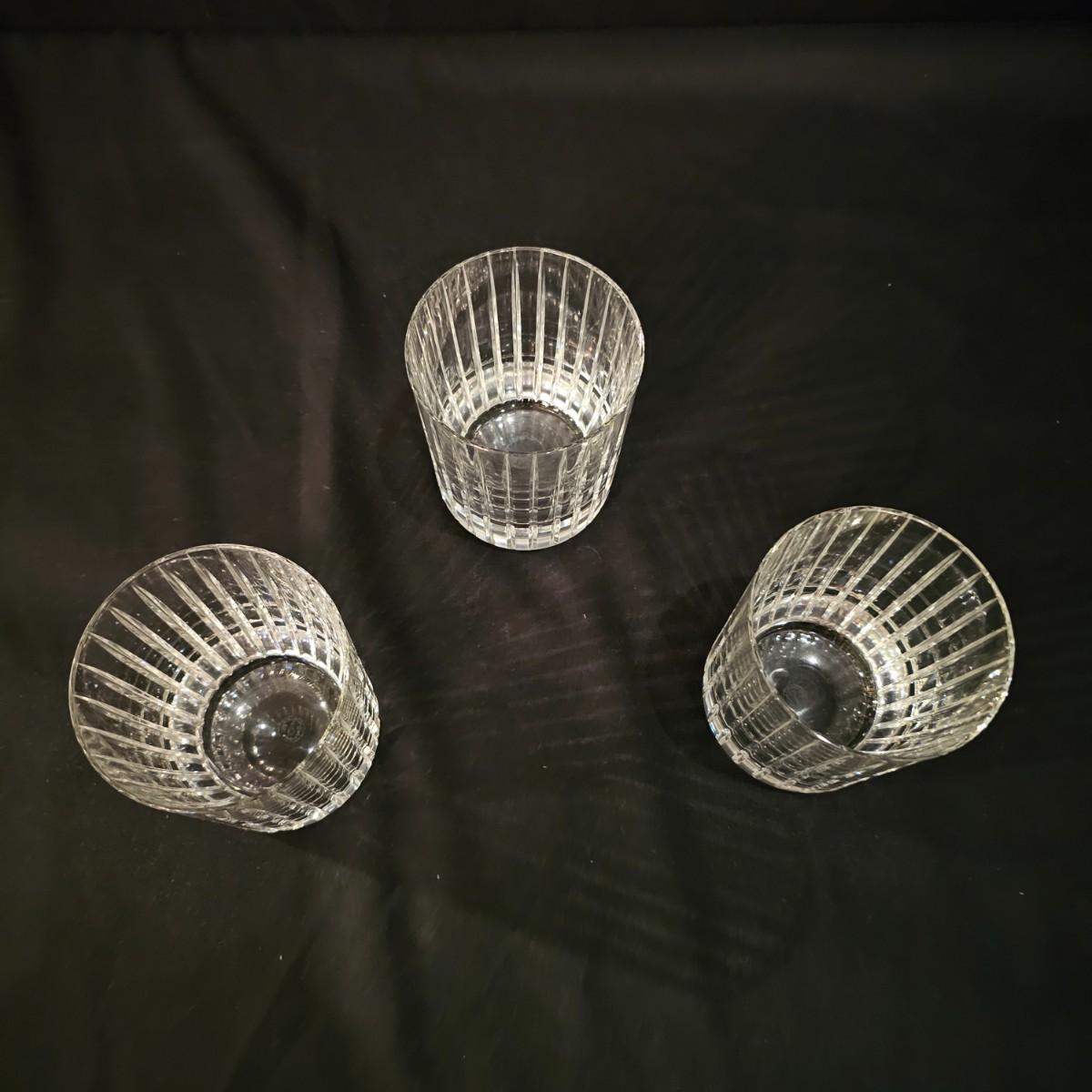 A trio of Baccarat crystal tumblers or highball glasses. 3" D x 4"H, these items have a vertical stripe pattern. See photos for details. Shipping available.