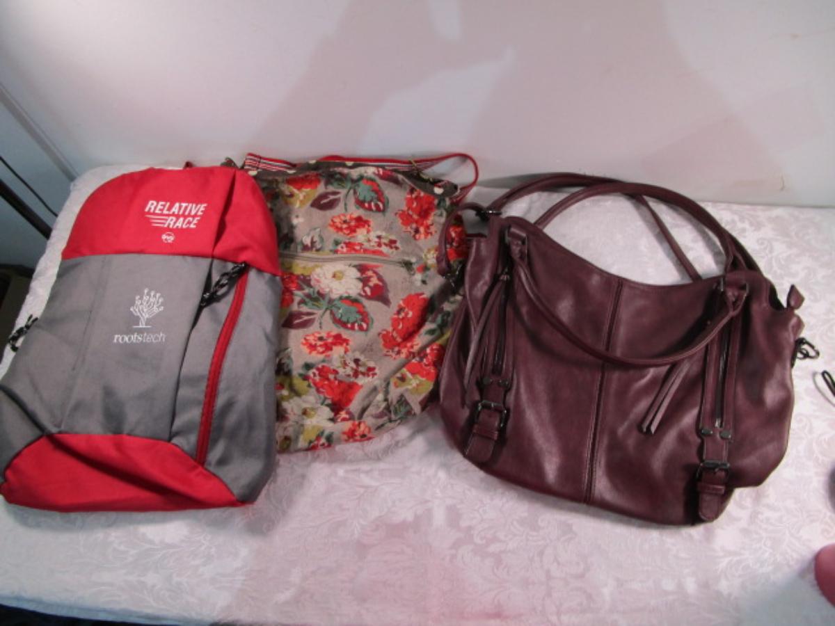 3 bags (1 light backpack, 1 tote bag, 1 Realer vegan leather handbag)